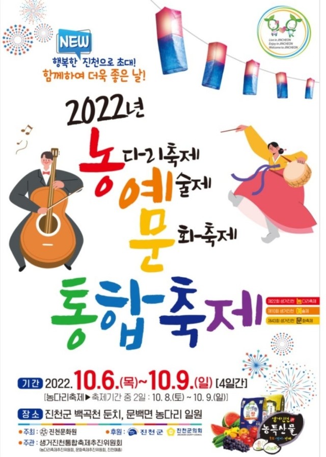4년만에 열린 대면축제로, ‘생거진천 문화축제’, ‘농다리 축제’, ‘생거지천 예술제’를 통합한 ‘농·예·문’ 통합축제로 개최되었습니다.